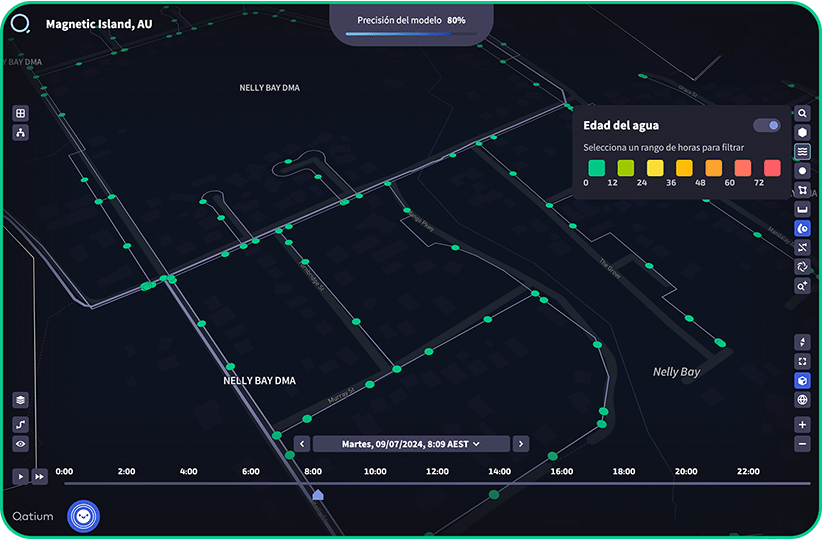 Analiza y predice el nivel de productos químicos en una red. Señala dónde añadir cloro para garantizar el suministro de agua potable en todo momento.