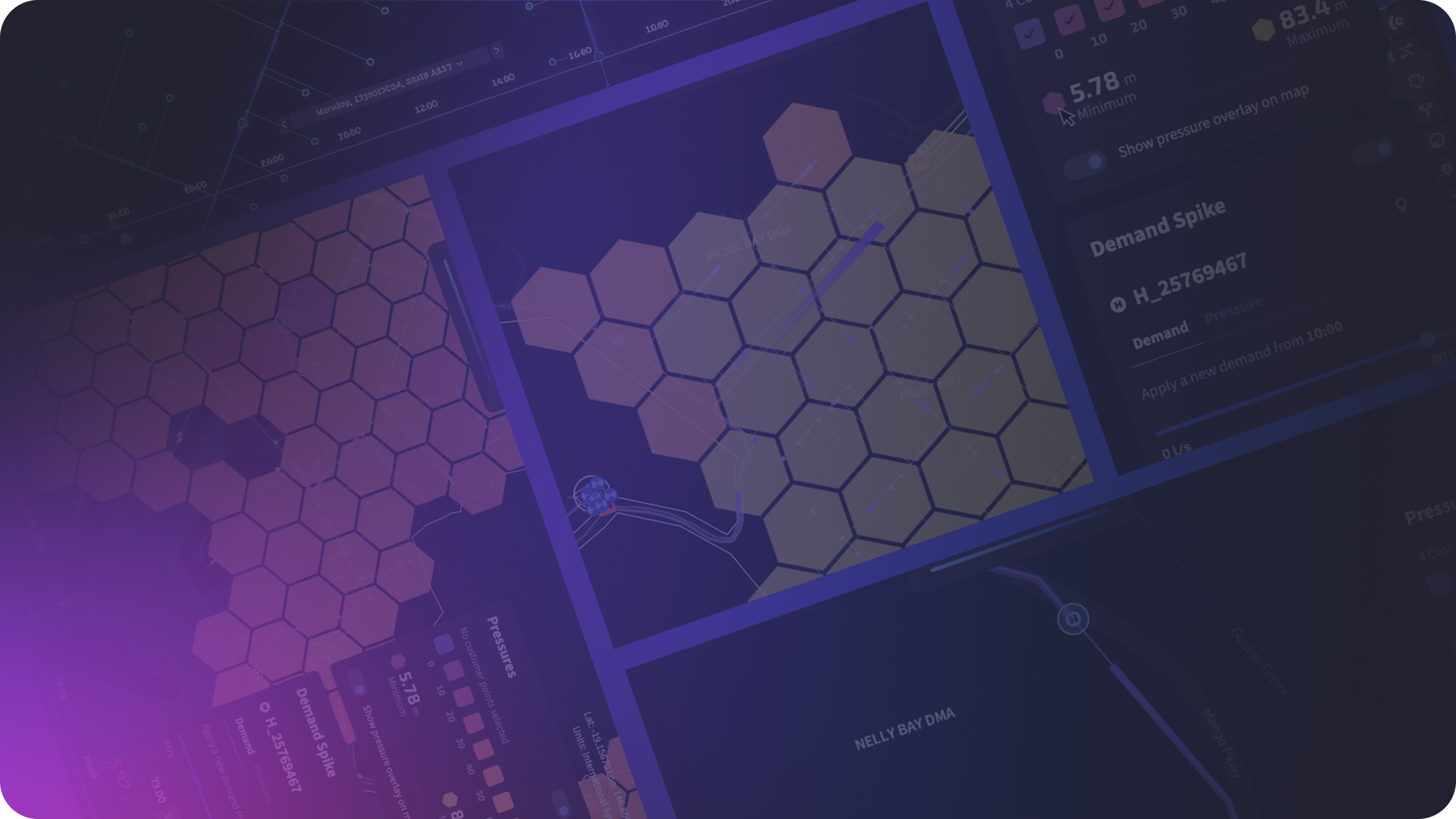 Learn to use the Pressure, Demand Spike, and Tank Autonomy panels for pressure analysis and firefighting network support.